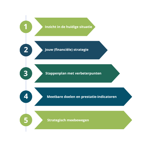 In vijf gestructureerde stappen naar meer financiële grip en strategisch inzicht.